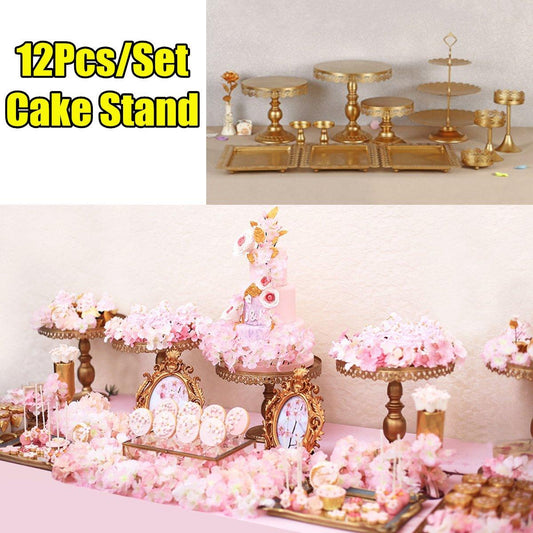 12pcs Fondant Cupcake Cake Stand Set Crystal Holder Dessert Display Tools Party Wedding Vintage Gold