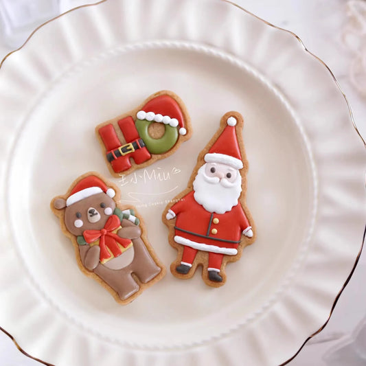 Christmas Santa Claus Bear Pattern Cookie Cutter HOHOHO Letters Biscuit Stamp Cartoon Icing Cookie Party